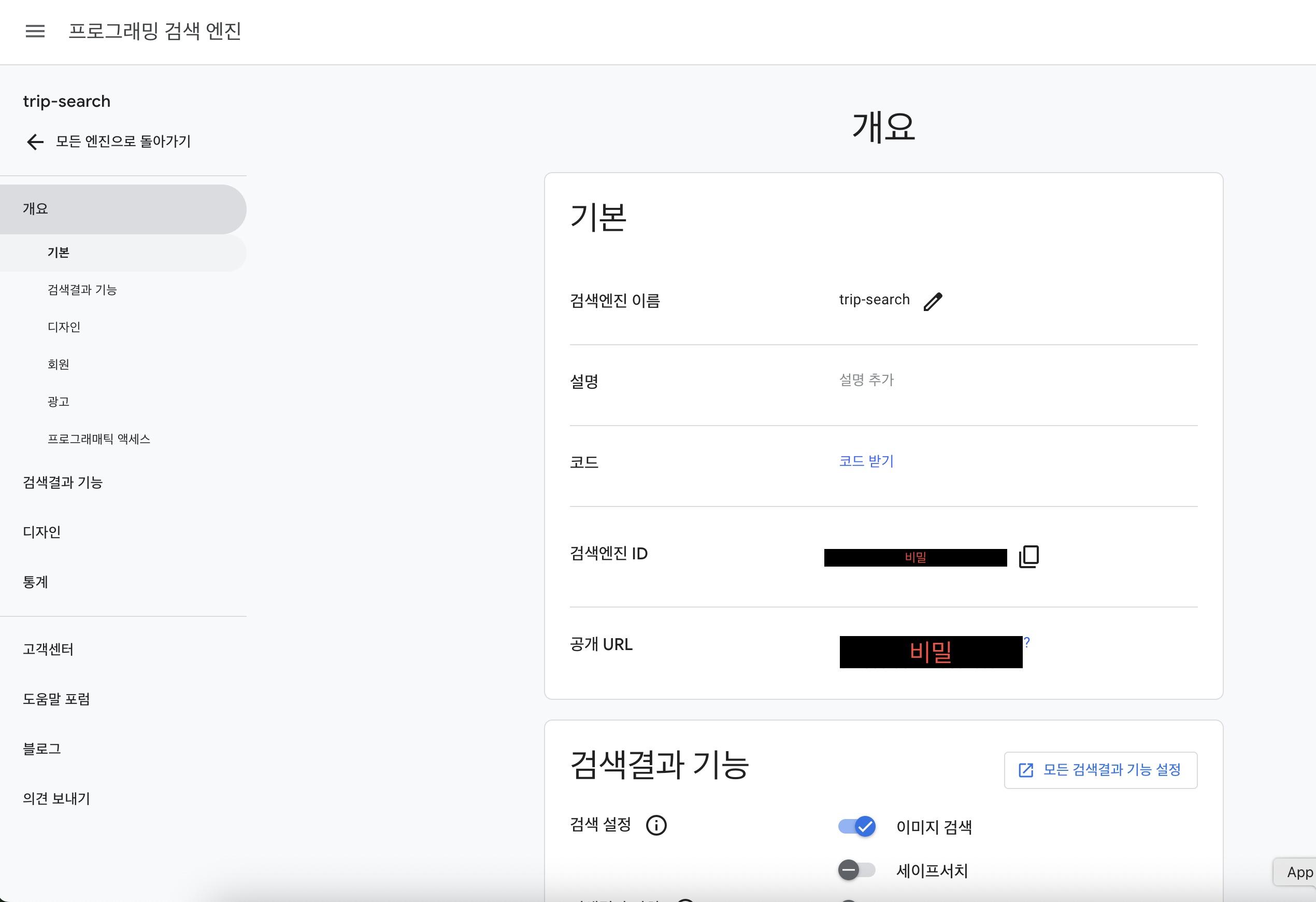 위 사진에 보이는 검색엔진 ID가 검색 결과를 받아오는 중요한 주소니까 역시 잘 적어두도록 하자