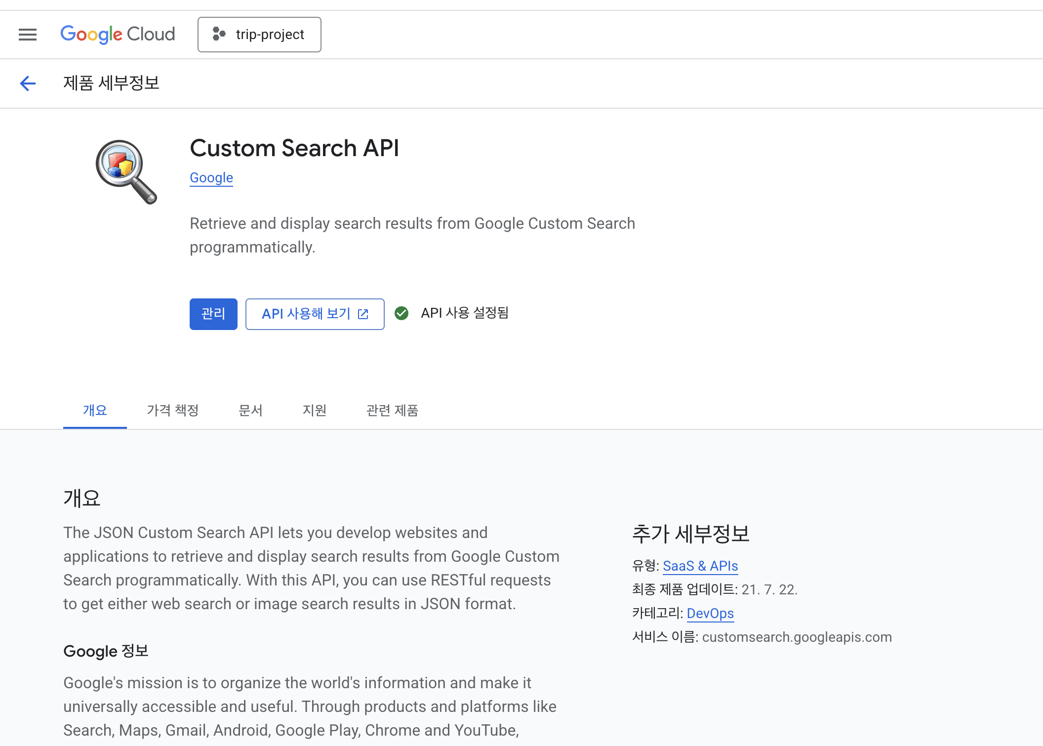 나는 Google의 Custom Search JSON API 만 사용했다!!!