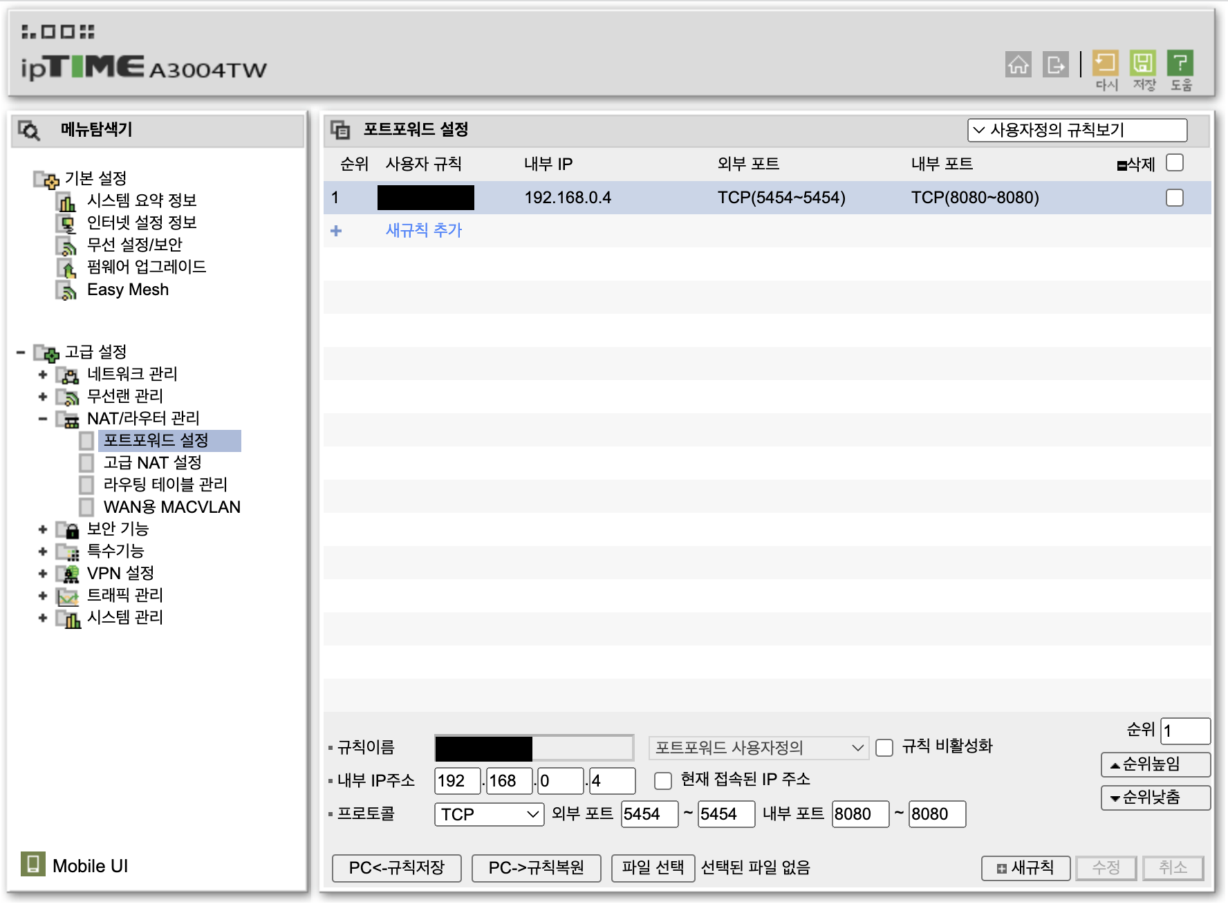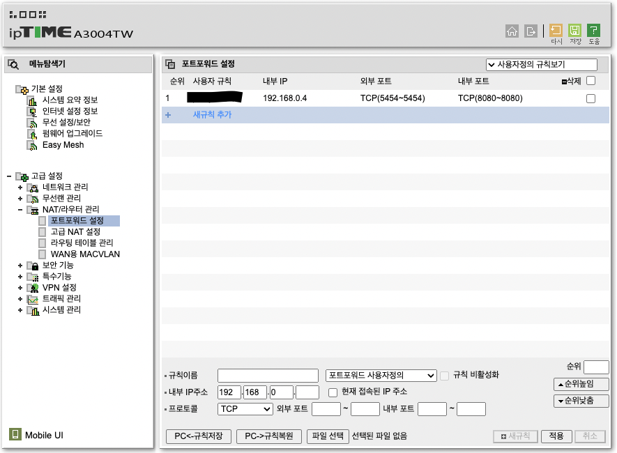 - 내부 IP주소는 서버가 돌아갈 기기의 IP주소를 입력하면 된다.