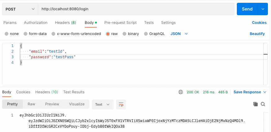 로그인 API를 보내면 토큰을 발급받은 것을 확인할 수 있다!!!